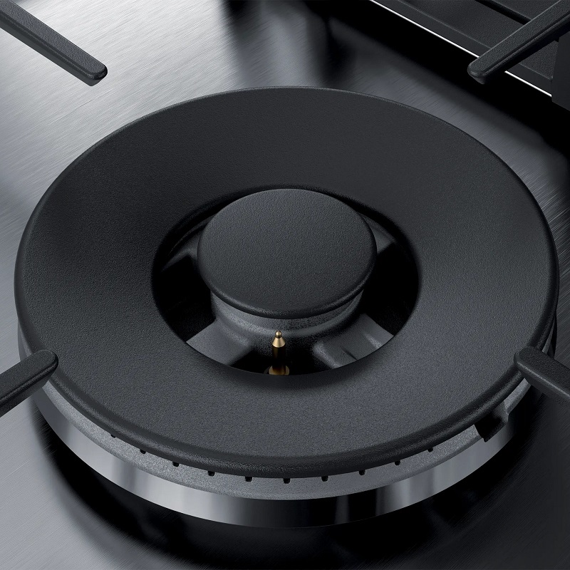 Absolute flame control with FlameSelect. Adjust the flame intensity across 9 different levels for perfect results, whether you're stir-frying or simmering. The FlameSelect system offers a unique experience for experienced users, allowing for precise heat customization. Quick and easy cleaning. Forget the hassles of cleaning traditional gas hobs: removable controls and dishwasher-safe cast iron grates make maintenance easy and ensure a spotless appearance.