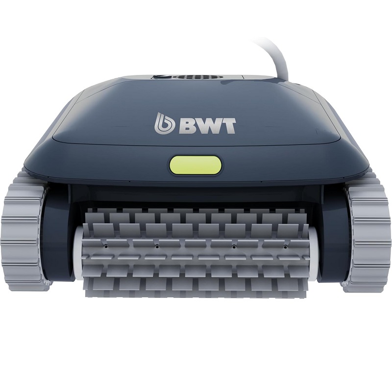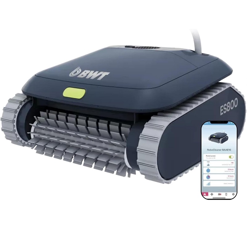 Powerful, lightweight, and innovative. Weighing only 5.75 kg, the BWT ES 800 pool robot is easy to handle, while its Intelligent Gyroscopic Navigation efficiently cleans every corner of your pool. The floor, walls, and waterline are perfectly cleaned thanks to the high-quality PVC brushes, guaranteeing consistently crystal-clear water.