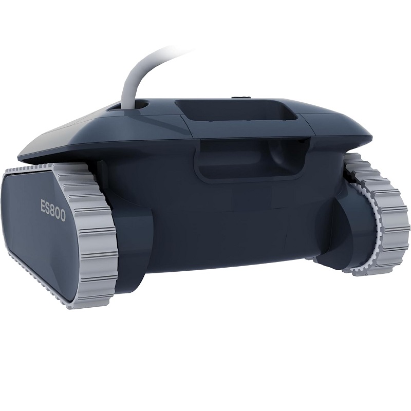 Its operation is particularly convenient thanks to app control, allowing you to quickly and easily prepare your pool robot. The electronic swivel (Gencore 7) effectively prevents cable tangling and ensures smooth operation. Furthermore, Intelligent Gyroscopic Navigation allows the ES 800 to automatically adapt to your pool's specific characteristics.