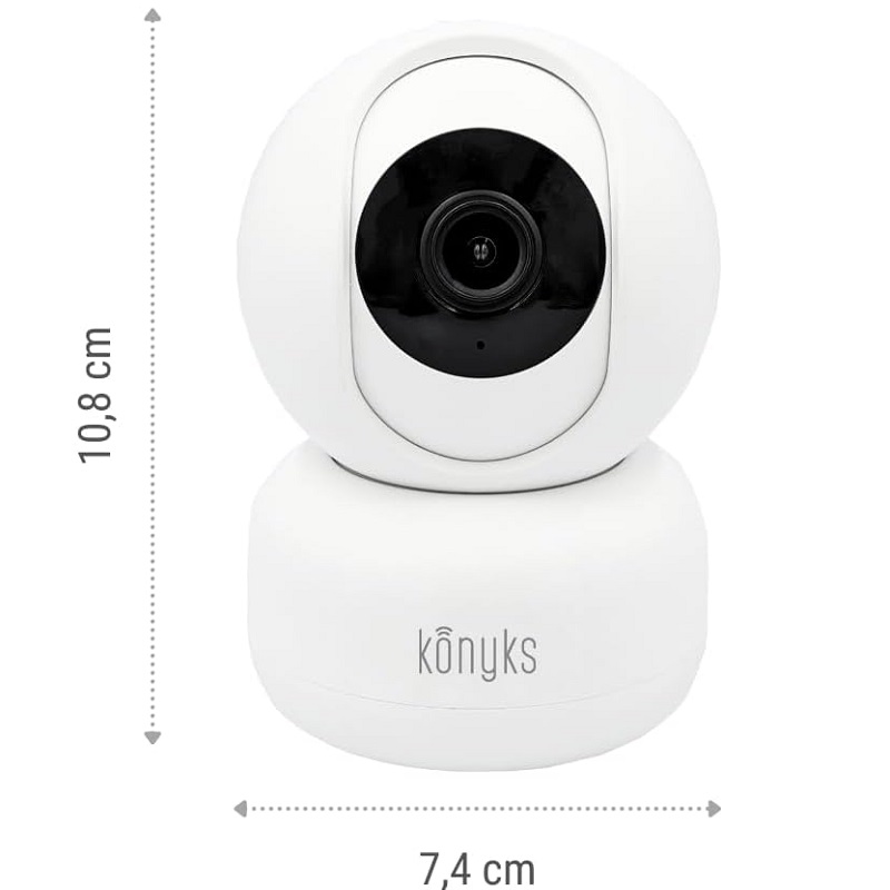 The Konyks Camini 2 IP camera is designed for indoor surveillance, offering a practical and technologically advanced solution for remote monitoring of spaces. Made of white plastic, this camera features wireless Wi-Fi connectivity, allowing for simple installation without data cables and easy integration into any home or small office. Its motorized design enables automatic lens orientation, increasing the coverage area and eliminating blind spots without manual adjustment.