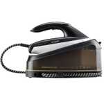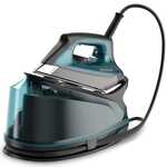 Powerful 2600W steam ironing system with 8 bar pressure, ultra-glide Turbo Slide Pro ceramic soleplate and Auto Shut Off safety system. Continuous steam output of 240 g/min and a steam burst of 550 g/min. Includes a clothes hanger.