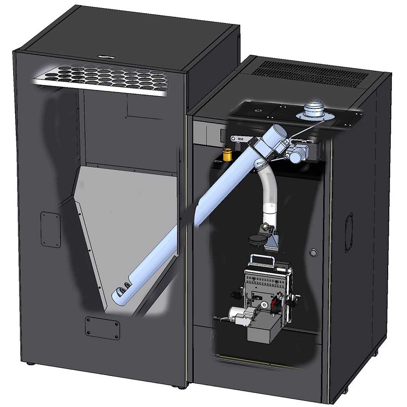 The DOMUSA BIOCLASS IC boiler can be managed remotely via an internet application if a Wi-Fi network is available. The BIOCLASS iConnect range features an intelligent combustion control system called FLAME LOGIC, which ensures optimal combustion at all times, even when changing pellet types, without any intervention from the owner. This boiler range features an automatic ash removal and flue gas cleaning system, providing ease of use and high reliability. The burner technology controls ash and unburned matter for durability and minimal maintenance.