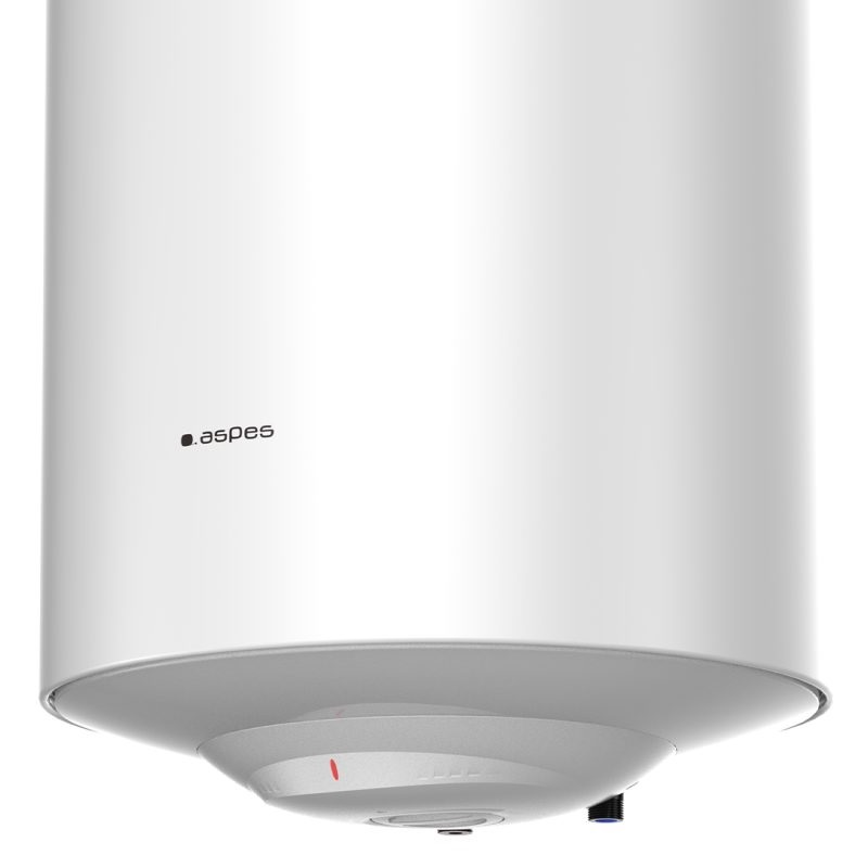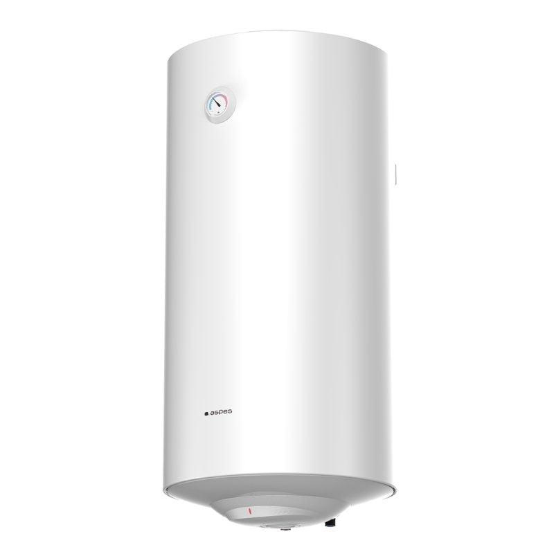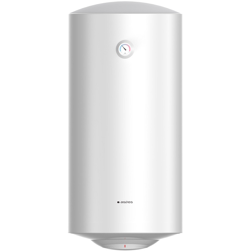 Vertical water heater with a 100-liter tank and a total power output of 1500 W. Energy class C and a maximum noise level of 15 dB. White finish with an enamelled steel interior. Includes a manual control panel, adjustable temperature up to 70°C, and an analog thermometer.