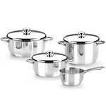 Monix, presents its CHEF cookware set in stainless steel without non-stick of the best quality made in Spain in 18/10 steel with triple diffuser bottom. The two-handled pieces include a glass lid, which allows you to see the cooking process of the food at all times.