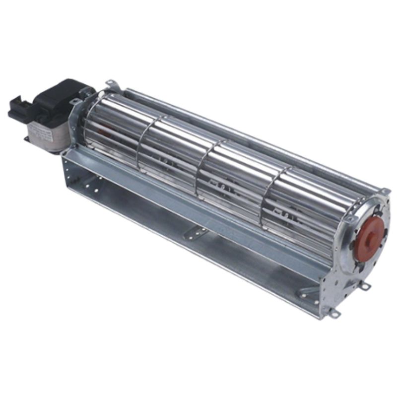 The Coprel TGO-60/240-20 left-hand tangential fan is an industrial ventilation component designed for applications requiring a uniform and quiet airflow, such as refrigeration systems, pellet stoves, or air curtains.