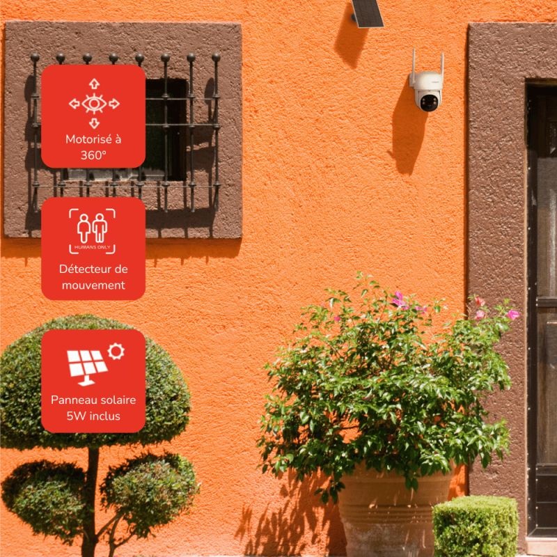 Another advantage: its solar power. Equipped with a rechargeable solar panel, this camera operates continuously, without needing an electrical connection. A real plus for locations without grid access or for those looking for an eco-friendly and economical solution. Robust, self-sufficient, and ultra-smart, this camera is the ideal solution for those who want unlimited surveillance. Whether in the countryside, on isolated land, or in a construction zone, you have total control, at all times.