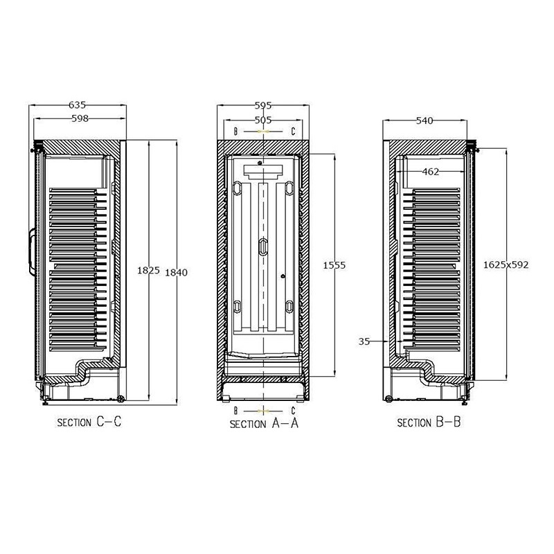 The double-glazed doors of our display cases feature a handle integrated into the aluminum frame. Models with a display case have a dedicated switch for the display case lighting. The APE451-C S2 model is a single-unit, double-door enclosure equipped with a thermostat and improved accessibility to reduce energy loss.