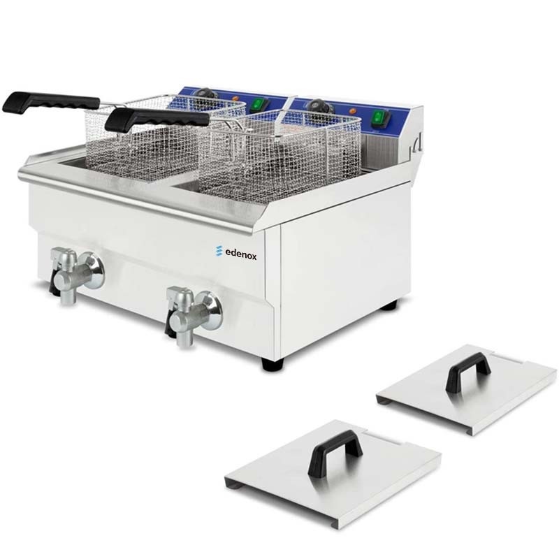 Edenox TF-10-D S1 10L x 2 Industrial Fryer with Tap, Stainless Steel, 2 x 4500W