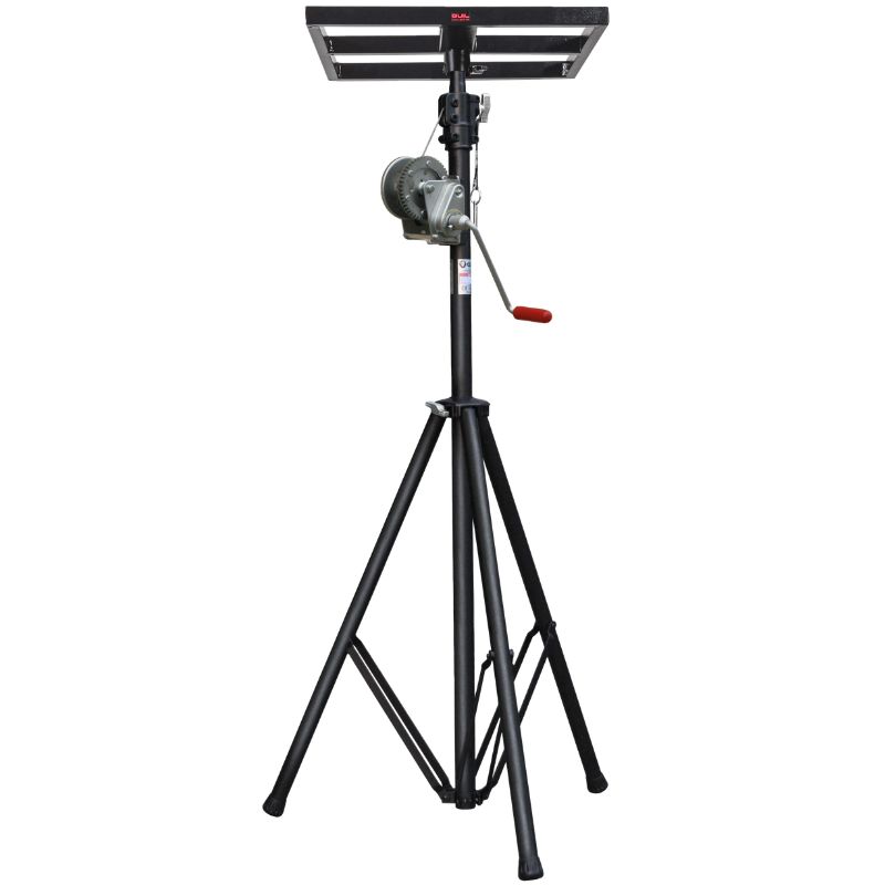 Self-locking winch prevents play and stops the load at the desired height.