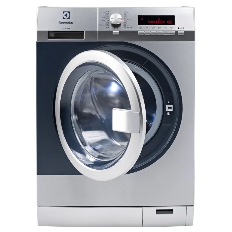Three times longer lifespan compared to domestic machines. More durable construction and a design adapted to intensive professional use. No risk of corrosion thanks to the stainless steel front and top. Variable speed (inverter) motor. Speed: up to 50% faster than domestic machines.