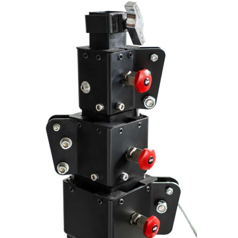 This equipment can be used both indoors and outdoors and is suitable for industrial, commercial, or domestic installations. The material hoist consists of three telescopic steel sections with a black powder coating and special scratch-resistant properties. This, combined with the fact that all components are made of stainless steel, makes the material hoist ideal for outdoor use and guarantees maximum corrosion resistance.