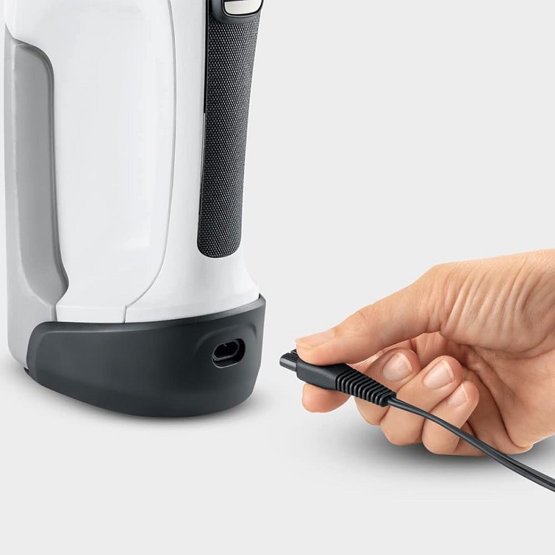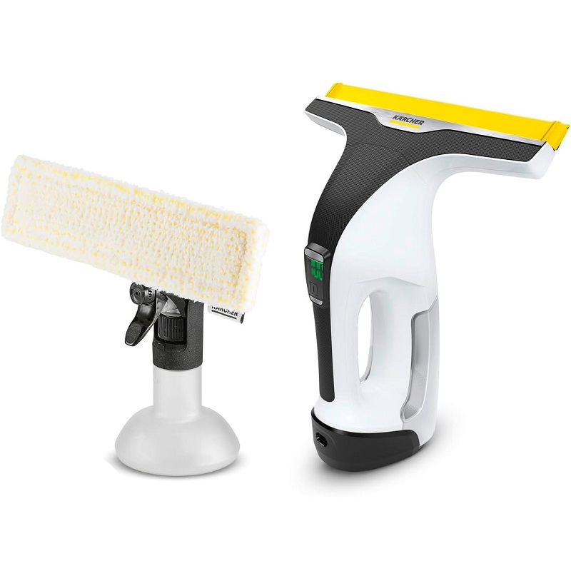 Kärcher has further improved its original cordless window cleaner, the WV 6 Plus is an even more flexible model to use, benefiting from an innovatively designed suction lip and a longer battery life, the new, extended suction lip allows you to pass over the entire surface, without interruption, with its extra-long battery life of 100 minutes, this cordless window cleaner can be used for even longer, and the display showing the remaining battery life to the minute allows precise planning of cleaning.
