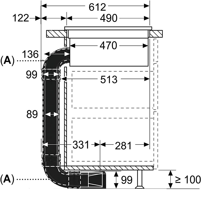 Accessory kit for a partially ducted recirculation system for worktops 70 cm deep or more.