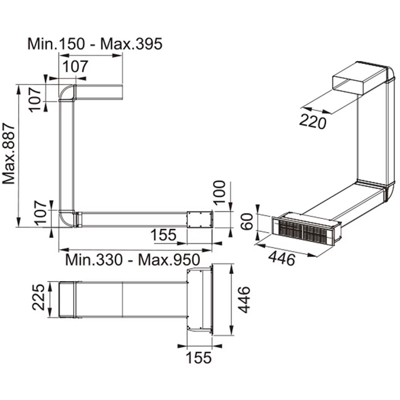 The Mepamsa recirculating exhaust kit for 10 cm baseboards with an H10 filter is a system designed to improve air quality in the kitchen. This kit includes an H10 filter that purifies the air, as well as two flat tubes for easy installation. It consists of two flat tubes, an elbow, and an outlet tube equipped with a filter and a grille. It's the ideal accessory for those looking for an efficient and practical air recirculation solution for small spaces. Please note that the plate shown in the image is not included in the kit.