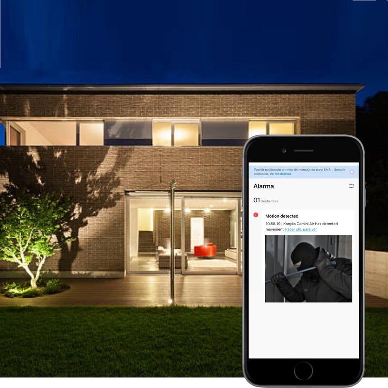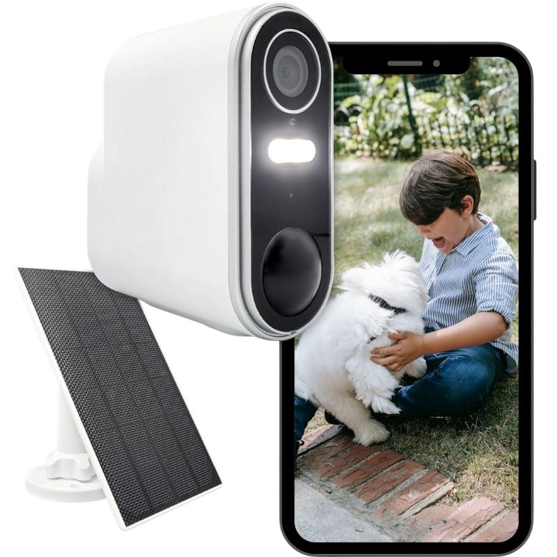 The Konyks Camini Air 2 Solar AAACF47440 wireless outdoor IP camera is an advanced solution for continuous outdoor surveillance, distinguished by its long-lasting operation thanks to an integrated solar panel that provides independent power with a 240V connection. Its white design and compact dimensions of 1.8 cm thick make it discreet and elegant to install, blending seamlessly into various environments.