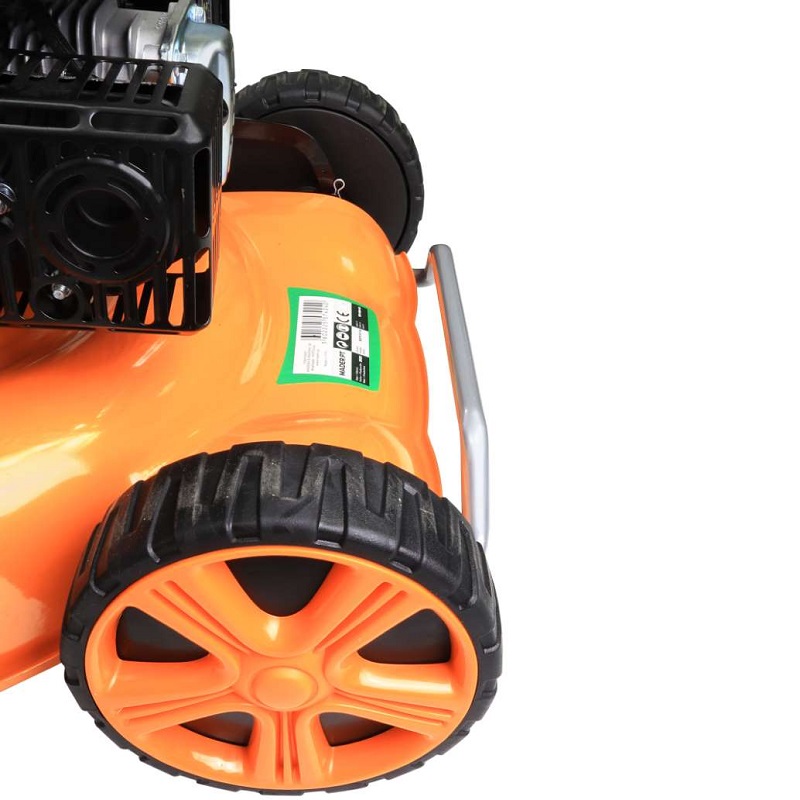 Big Wheels mounted on ball bearings, 255 mm at the rear, 525 mm cutting width, high-quality mulching blades made of special steel