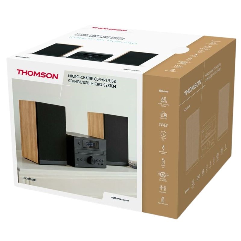 This Thomson micro hi-fi system is designed to deliver a complete audio experience, incorporating key technologies that ensure compatibility with various formats and devices, all in a simple and stylish design.