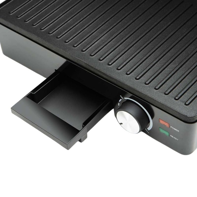 With a cooking surface of 23 x 14.5 cm per plate, you'll have ample space for your everyday meals. For easy cleaning, it features a convenient grease collection tray that collects juices and fats, simplifying maintenance and keeping your worktop clean.