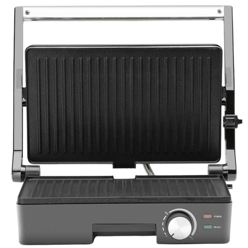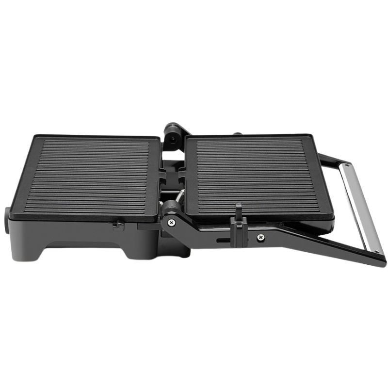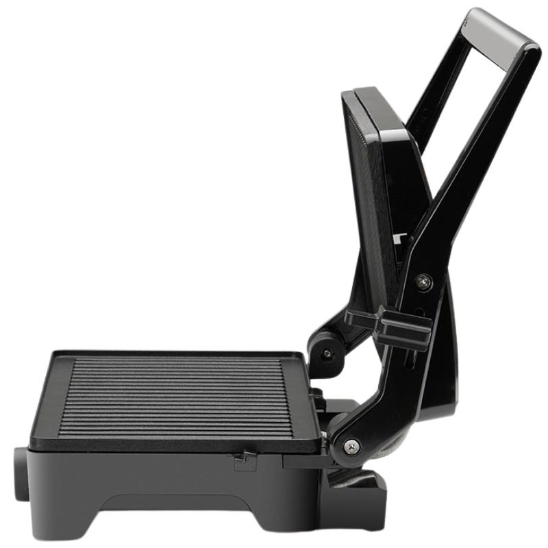 One of its main advantages is its large cooking surface with two 180° folding plates. You can use it as a traditional closed grill for even cooking on both sides (ideal for sandwiches or steaks), or open it completely to double the cooking surface and use it as a griddle. Perfect for preparing multiple portions at once or grilling large cuts of meat.