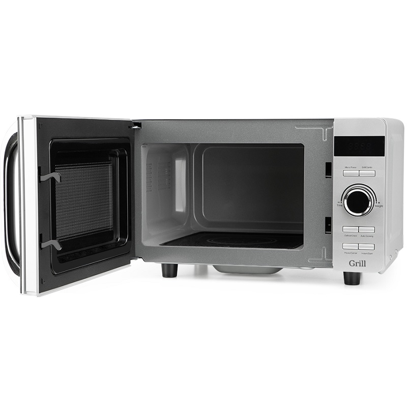 It features 700W of power in microwave mode and 800W in grill mode for optimal cooking, reheating, or grilling. It also offers 8 automatic menus that intelligently adapt the time and power to different types of food, as well as 5 power levels to personalize your cooking.