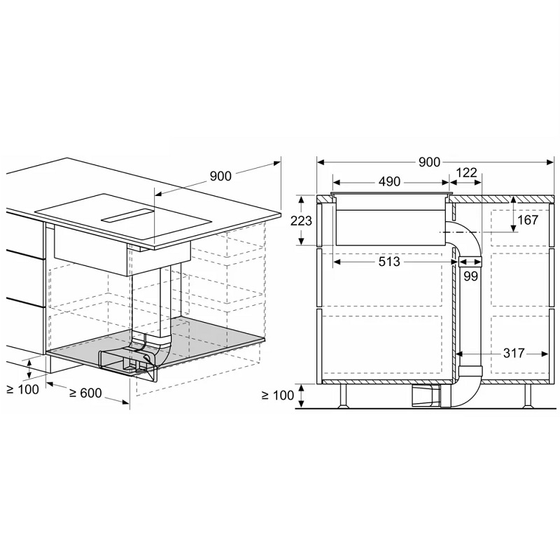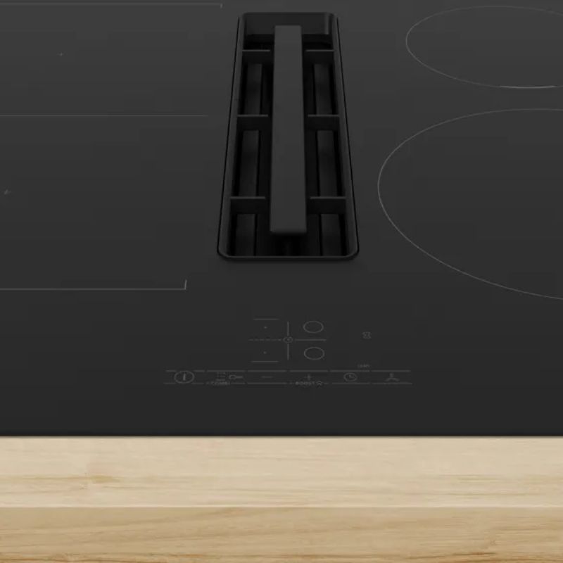 What truly sets this induction hob apart is its integrated extractor hood. This unique feature guarantees smoke- and odor-free cooking. Thanks to the integrated extraction system, smoke and odors are eliminated directly at the source.