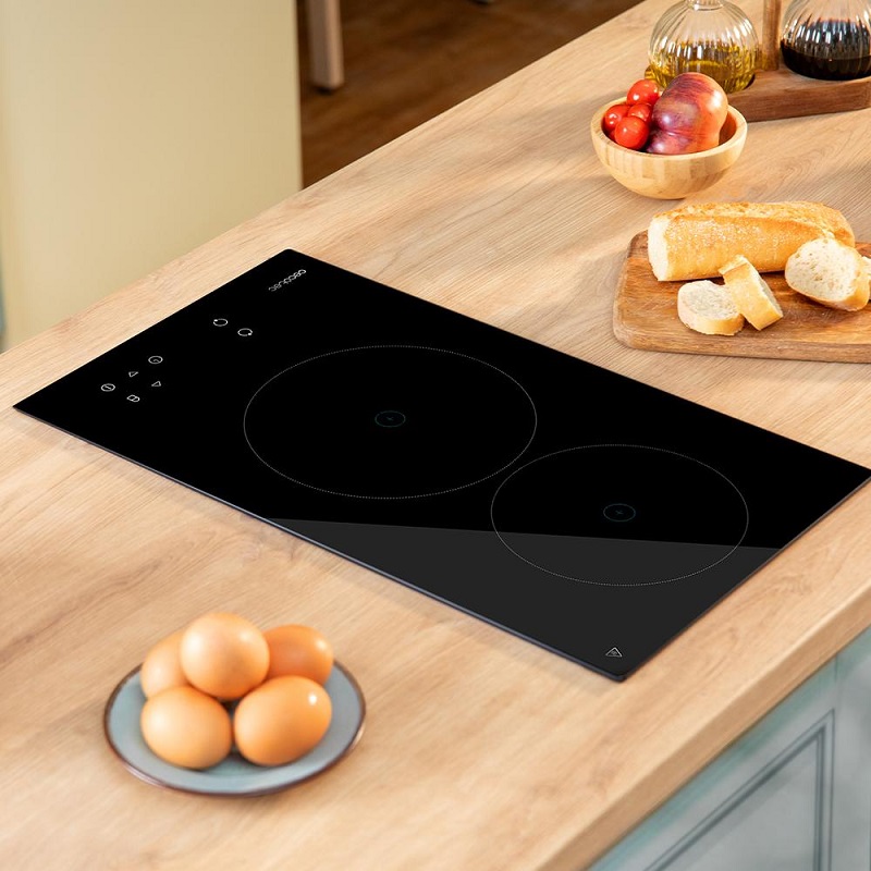 Residual heat indicator: A light indicates when the burners are hot. 2 burners: one 16 cm burner with 1200 W power, and another 20 cm burner with 1800 W power.