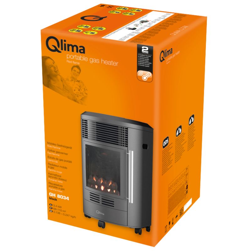 The Qlima GH 8034 designer gas stove offers 6 heat settings, allowing you to adjust the power to the desired temperature. This luxurious gas stove boasts a beautiful finish with glass doors and a chrome handle. The artificial embers recreate the warm ambiance of old-fashioned fireplaces. All the benefits