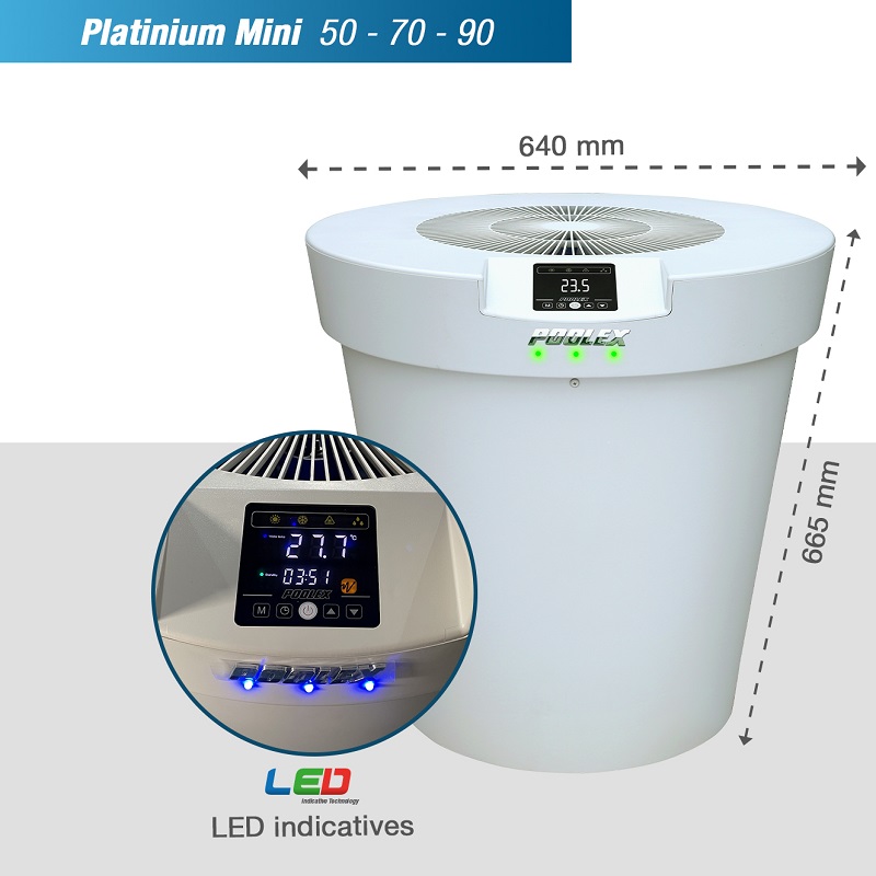 Available in 3 power outputs for pools with a maximum volume of 65 m³, the Platinium Mini is equipped with all the features that have made Poolex heat pumps renowned: Full Inverter technology, WiFi control, and LED indicators. Thanks to Full Inverter technology, the heat pump operates more stably, maintaining a constant temperature close to the set point, preventing consumption spikes, and reducing energy consumption.