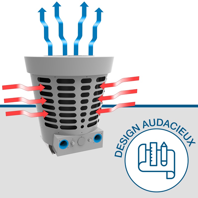 The Platinium Mini is therefore a quiet pump that you can proudly display in your outdoor space. Its vertical ventilation prevents stale air from being expelled onto the installation surface, resulting in significant space savings. The integrated LED indicators add a touch of elegance while providing a highly useful function: instant visualization of the pump's operating status. Easily control your Platinium Mini from your smartphone screen thanks to the Wi-Fi connection integrated into the heat pump's control panel.