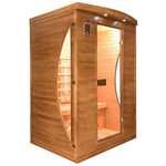 Detailed installation instructions are included with the sauna. Infrared saunas do not emit steam or heat the cabin to very high temperatures, and they do not cause a feeling of being submerged. Infrared saunas provide numerous health benefits: they help combat stress, strengthen the immune system, relieve joint pain, and aid in weight loss. Capacity: 2 people