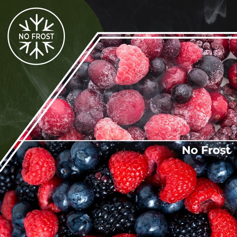 No Frost refrigerator with Inverter motor and R600a refrigerant. Energy class E and a maximum noise level of 38 dB.