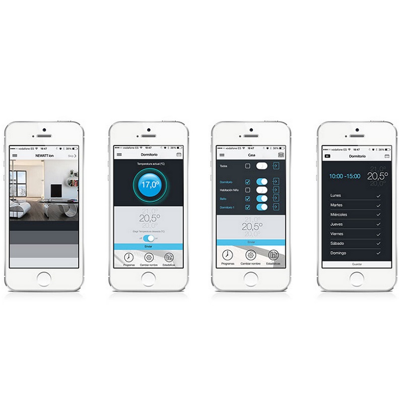 This conducts electricity and heats the surface evenly, consuming much less energy. It incorporates an additional heat source on the back that generates warm air through natural convection. It can also be controlled remotely via Wi-Fi.