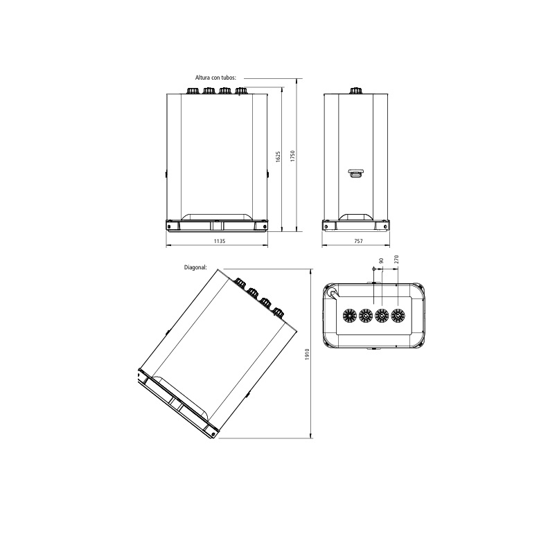 Diagonal: 1,910 mm