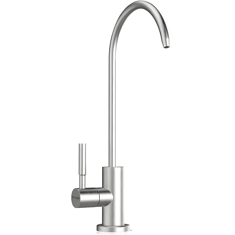 The ATH Luxe 1/4" ceramic dispenser faucet is designed for water treatment systems. It allows for the direct dispensing of reverse osmosis treated water into the sink, preventing cross-contamination with tap water.