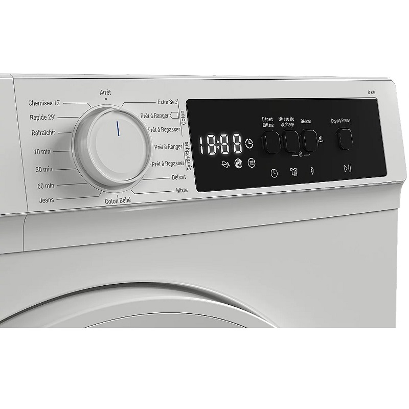 This white Daewoo dryer offers energy savings and gentler care for your clothes thanks to its heat pump. It's a more stable and quieter machine. The corrosion-resistant stainless steel drum ensures a longer lifespan. The bubble drum design minimizes friction on your laundry, protecting your clothes.