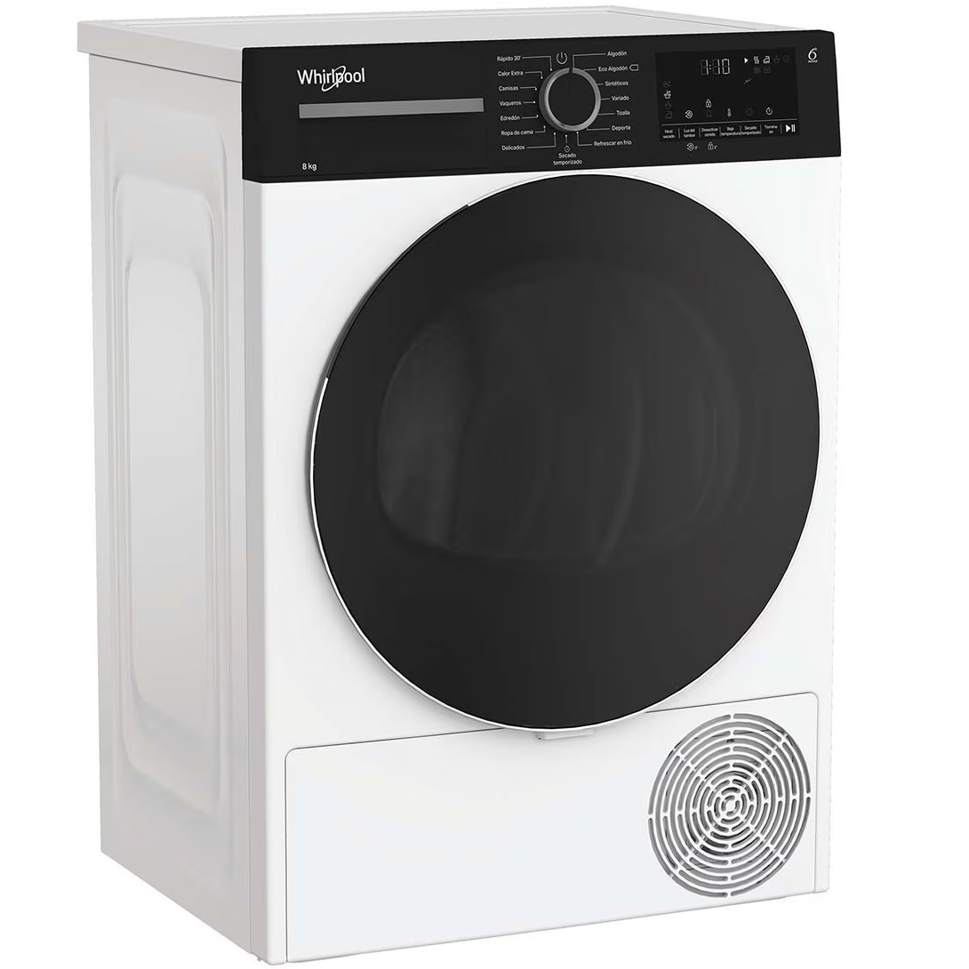 This freestanding Whirlpool tumble dryer features: an exceptionally large 9 kg drum capacity for optimal space saving; exclusive 6th SENSE technology that continuously monitors drum humidity, protecting your clothes and ensuring perfect drying;