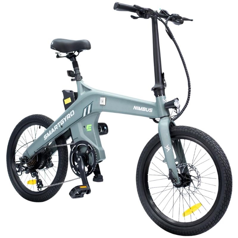 The Smartgyro NIMBUS 20 is an electric bike designed to offer agile and versatile urban mobility. Equipped with a 250W motor that allows it to reach a top speed of 25 km/h, this model combines efficiency and power for everyday commuting. Its 20-inch wheels with 2.125" tires ensure a good balance between maneuverability and stability, ideal for navigating narrow streets and varied surfaces.