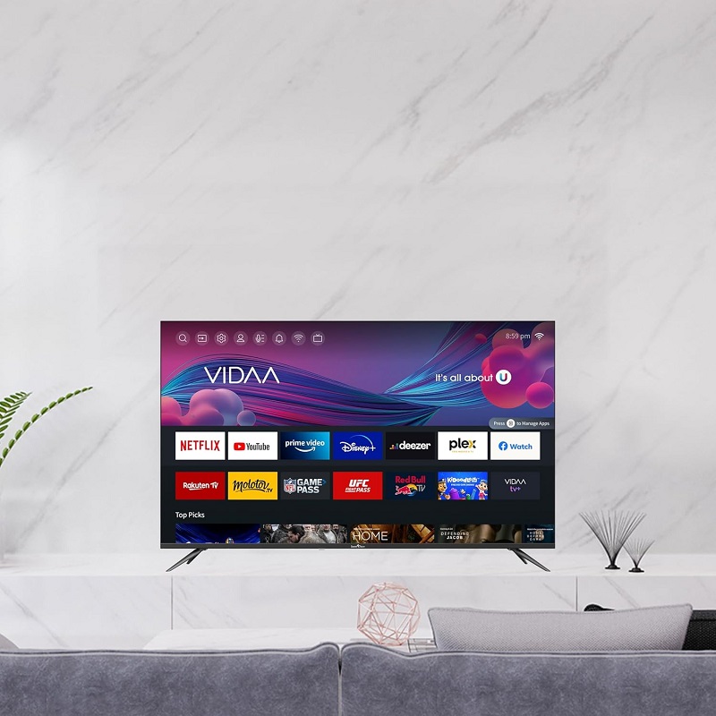 Its audio system, consisting of two 10W speakers and Dolby Audio technology, delivers clear and powerful sound that complements the image quality. Equipped with the VIDAA 4.1 operating system, this TV allows you to quickly access popular applications such as Netflix, Prime Video, Disney+, and Spotify for a complete entertainment experience.