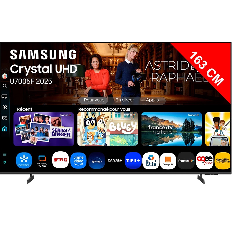 Experience unparalleled visuals with the Samsung TU65U7005F. This 65-inch LED TV delivers 4K UHD resolution of 3840 x 2160 pixels, immersing you in exceptionally sharp images. HDR10+ technology ensures vibrant colors and deep contrasts for total immersion. Smart TV and Gaming Hub give you access to a multitude of apps and games. With its 3 HDMI ports and Wi-Fi connectivity, this TV is designed for the ultimate entertainment experience.