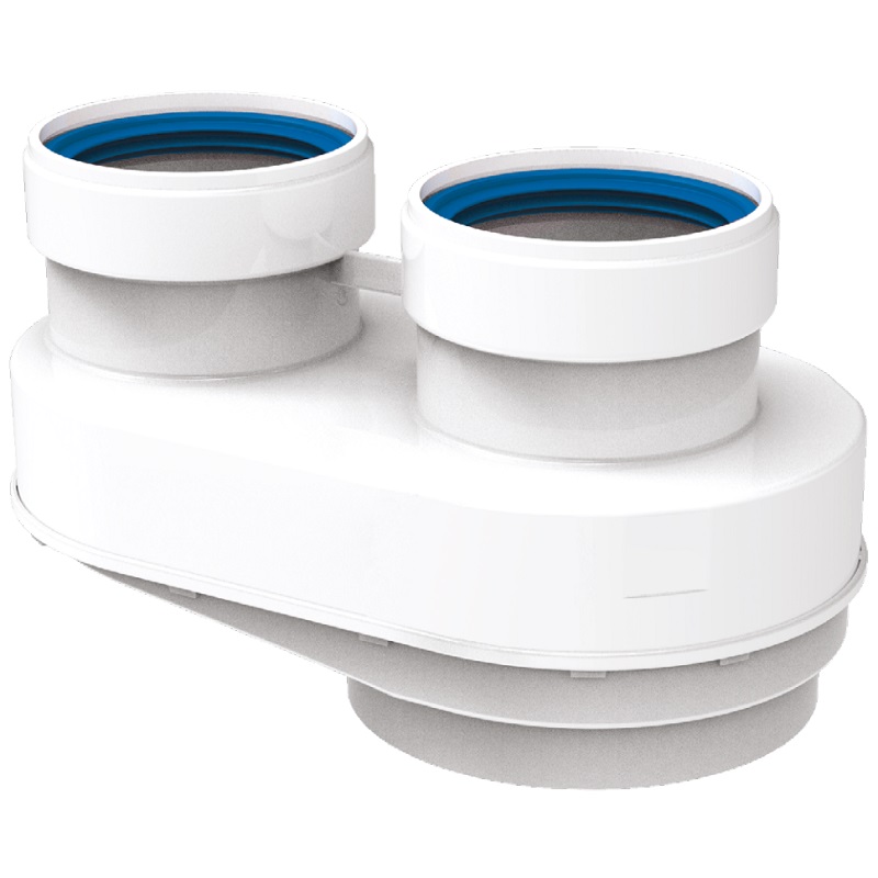 Coaxial adapter for dual-flow boiler outlet compatible with Junkers water heaters