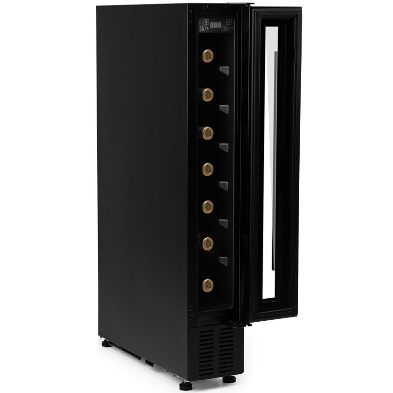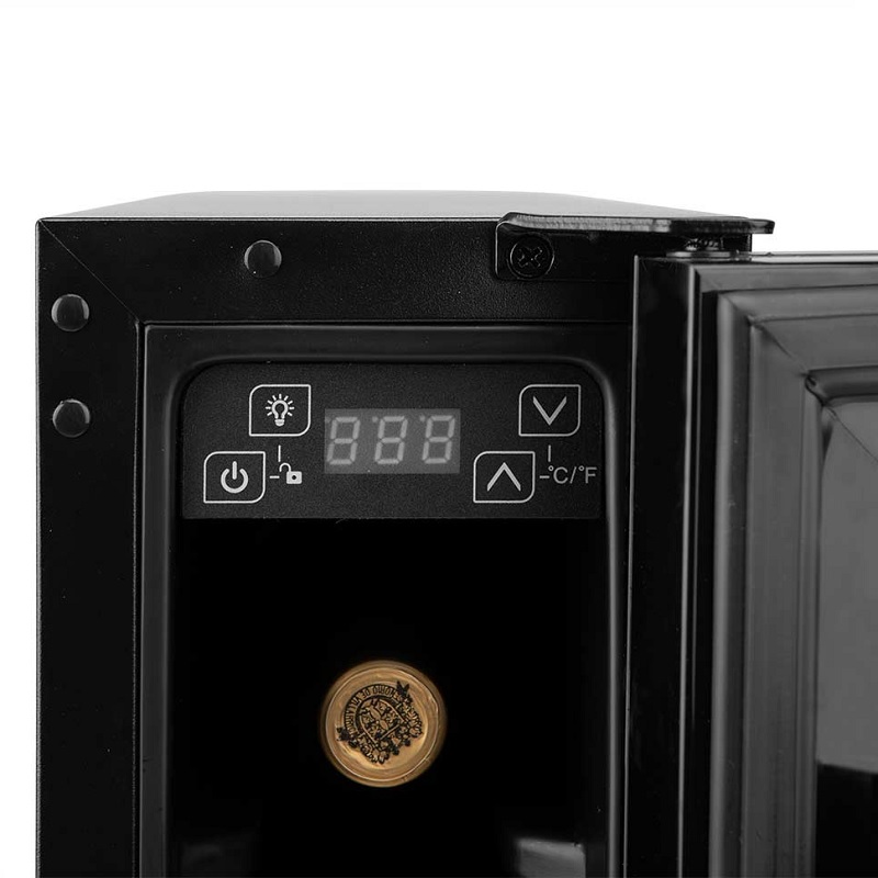 The refrigeration system for the compressor guarantees rapid and stable refrigeration, maintaining a constant temperature at constant temperatures. Thanks to the numerical LCD screen and tactile command panel, it can be used to regulate the temperature between 5 °C and 20 °C, adapting to red wines, whites or effervescents. Furthermore, the temperature adjustment at °C or °F offers comfort and precision accuracy.