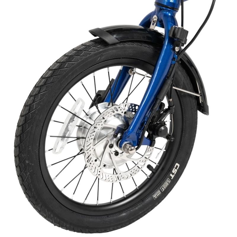Its front and rear wheels measure 16 inches, a size that offers a good balance between maneuverability and stability, ideal for riding on roads and paved paths. The bike offers a maximum range of up to 45 km per charge, making it suitable for daily commutes without frequent recharging, promoting sustainable and economical use. Furthermore, it is designed to be compatible with standard European plugs (EU plug), making it easy to recharge in any home or public charging station.