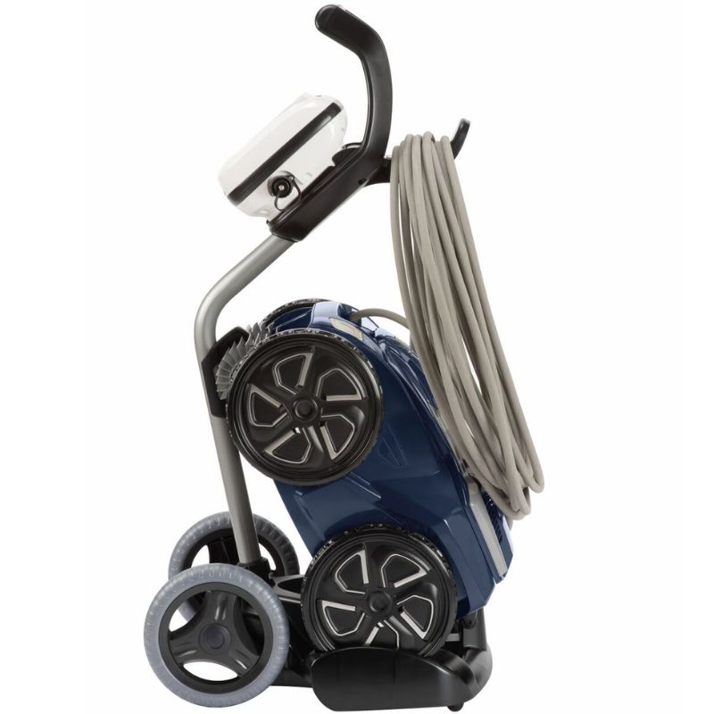 The Zodiac RA 6700 IQ 4WD iQ's Sensor Navigation system ensures the robot detects obstacles and navigates smoothly around them, while pressure sensors aid in precise cleaning of walls and the waterline. Swing technology prevents the cable from tangling, allowing the robot to work continuously without interruption. The lifting assistance system makes it easy to remove the robot from the water afterward, and the included transport trolley facilitates movement and storage.